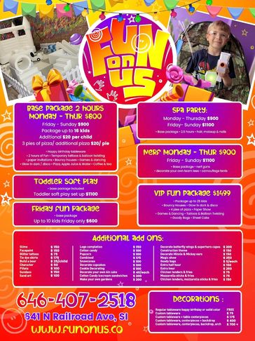 Having a party at home, restaurant, daycare, or just having a get together? We have TONS of packages for all ages. From 30 minute packages to 2+ hours !